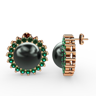 Siyah inci ve yeşil kuvars 925 ayar rose altın kaplama gümüş küpe