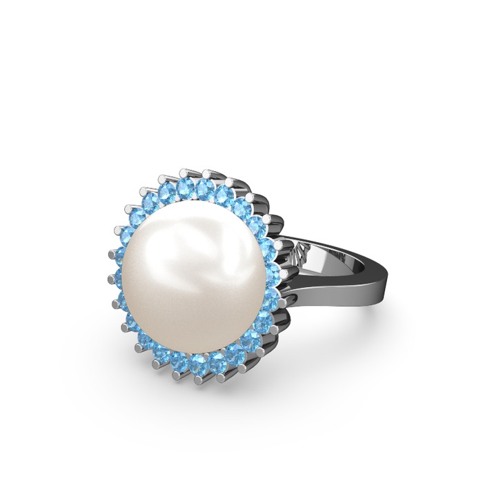 Inci ve akuamarin 18 ayar beyaz altın yüzük