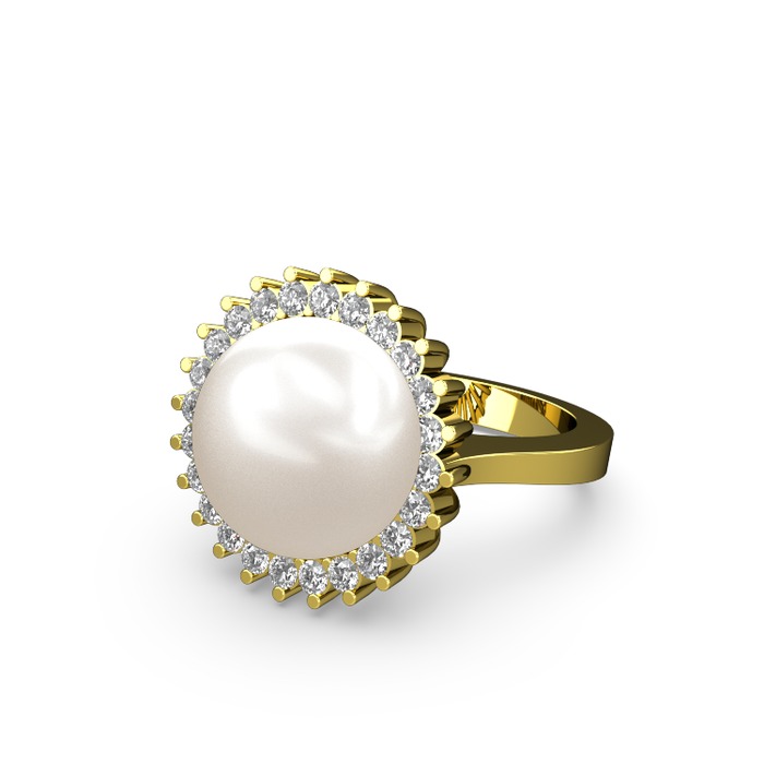 Inci ve beyaz zirkon 925 ayar altın kaplama gümüş yüzük