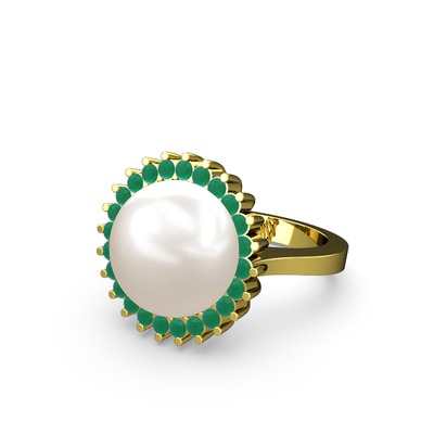 Inci ve kök zümrüt 14 ayar altın yüzük