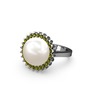 Inci ve peridot 14 ayar beyaz altın yüzük