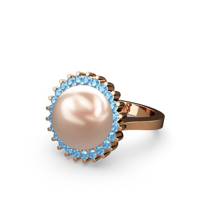Pembe inci ve akuamarin 8 ayar rose altın yüzük