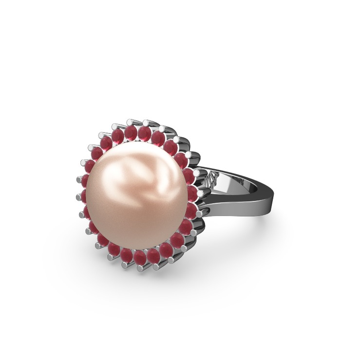 Pembe inci ve kök yakut 14 ayar beyaz altın yüzük