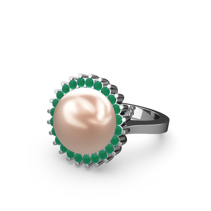 Pembe inci ve kök zümrüt 14 ayar beyaz altın yüzük