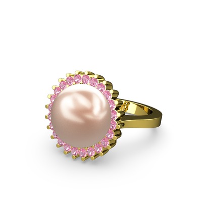Pembe inci ve pembe kuvars 925 ayar altın kaplama gümüş yüzük