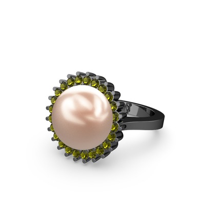 Pembe inci ve peridot 925 ayar siyah rodyum kaplama gümüş yüzük