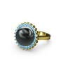 Siyah inci ve akuamarin 14 ayar altın yüzük
