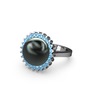 Siyah inci ve akuamarin 14 ayar beyaz altın yüzük