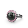 Siyah inci ve pembe kuvars 18 ayar beyaz altın yüzük