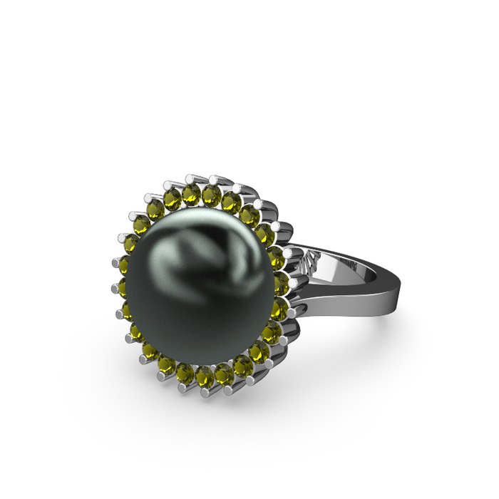Siyah inci ve peridot 925 ayar gümüş yüzük