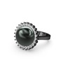 Siyah inci ve pırlanta 925 ayar siyah rodyum kaplama gümüş yüzük (0.48 karat)