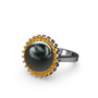 Siyah inci ve sitrin 14 ayar beyaz altın yüzük