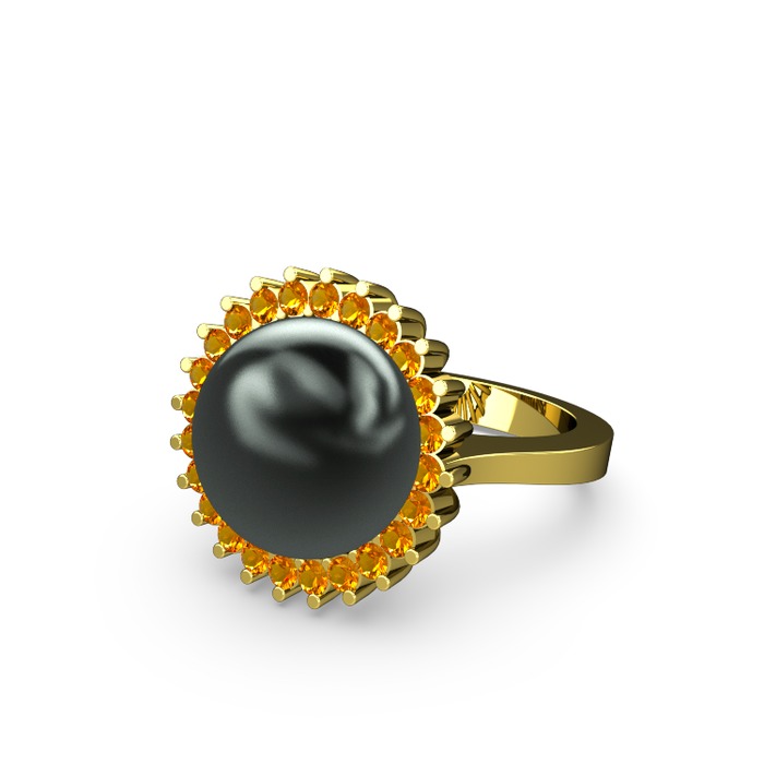 Siyah inci ve sitrin 8 ayar altın yüzük