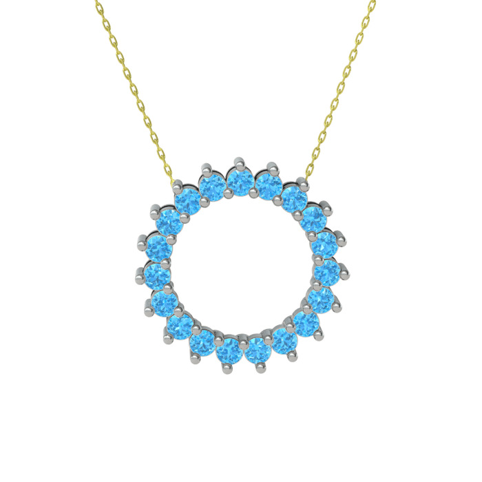 Akuamarin 18 ayar beyaz altın kolye (40 cm gümüş rolo zincir)