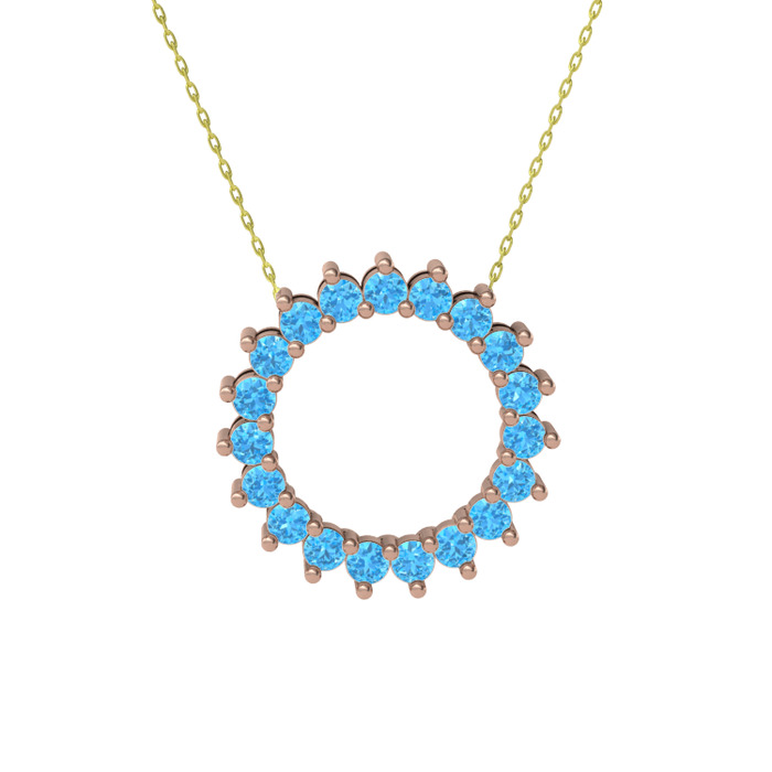 Akuamarin 18 ayar rose altın kolye (40 cm altın rolo zincir)