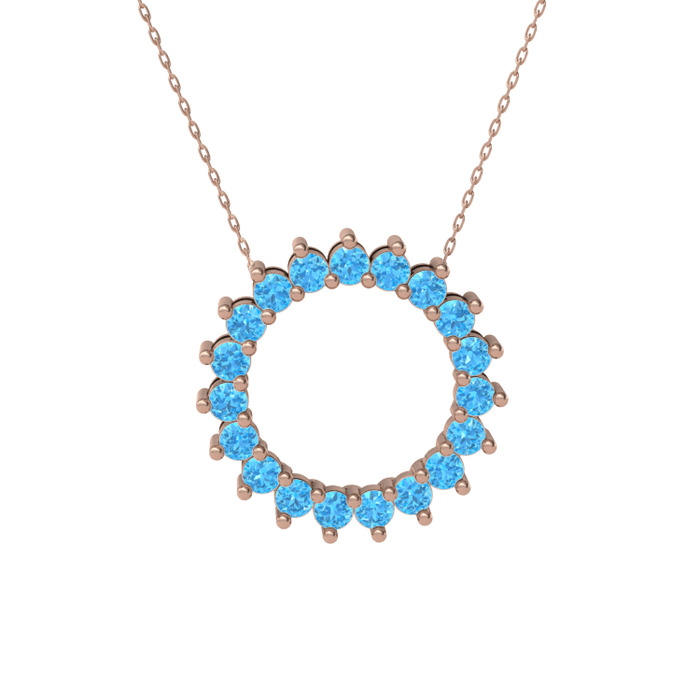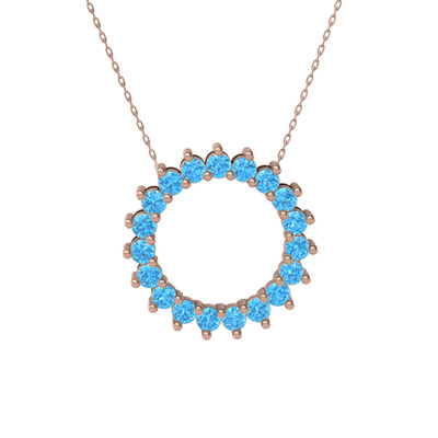 Akuamarin 18 ayar rose altın kolye (40 cm rose altın rolo zincir)