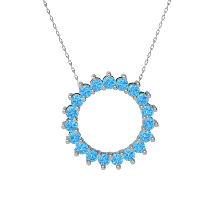 Akuamarin 8 ayar beyaz altın kolye (40 cm beyaz altın rolo zincir)