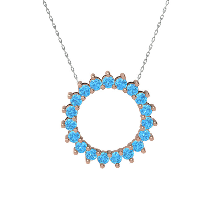 Akuamarin 925 ayar rose altın kaplama gümüş kolye (40 cm beyaz altın rolo zincir)