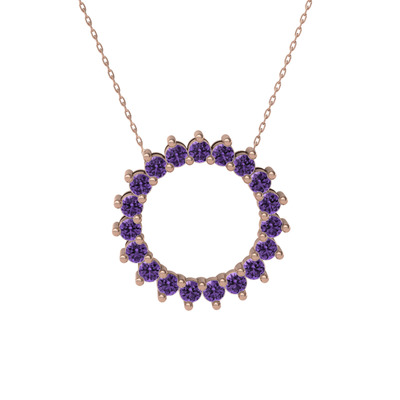 Ametist 14 ayar rose altın kolye (40 cm rose altın rolo zincir)