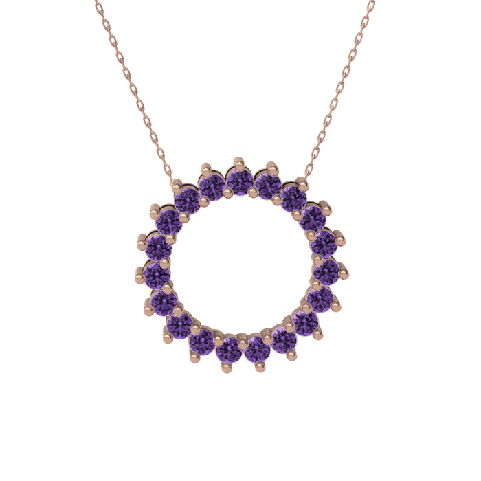 Ametist 18 ayar rose altın kolye (40 cm rose altın rolo zincir)