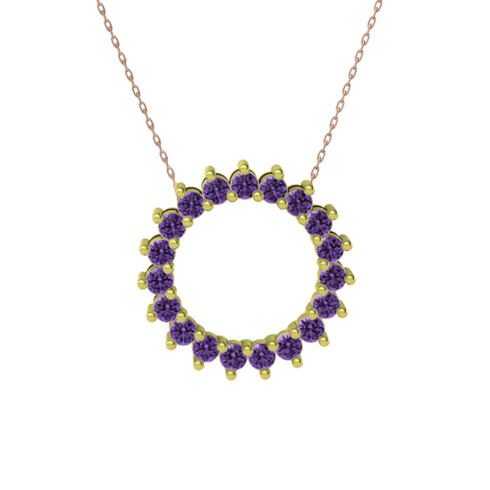 Ametist 8 ayar altın kolye (40 cm rose altın rolo zincir)