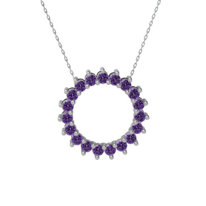 Ametist 8 ayar beyaz altın kolye (40 cm gümüş rolo zincir)