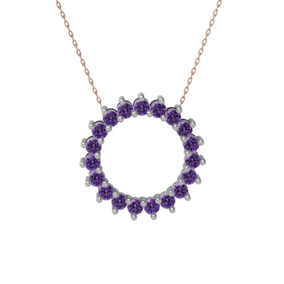 Ametist 925 ayar gümüş kolye (40 cm rose altın rolo zincir)
