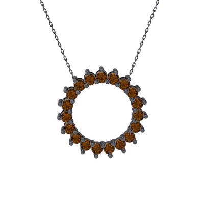 Dumanlı kuvars 925 ayar siyah rodyum kaplama gümüş kolye (40 cm gümüş rolo zincir)