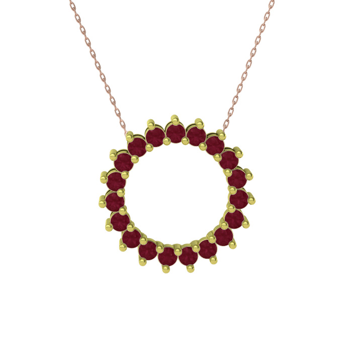 Kök yakut 14 ayar altın kolye (40 cm rose altın rolo zincir)
