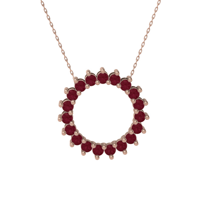 Kök yakut 14 ayar rose altın kolye (40 cm rose altın rolo zincir)