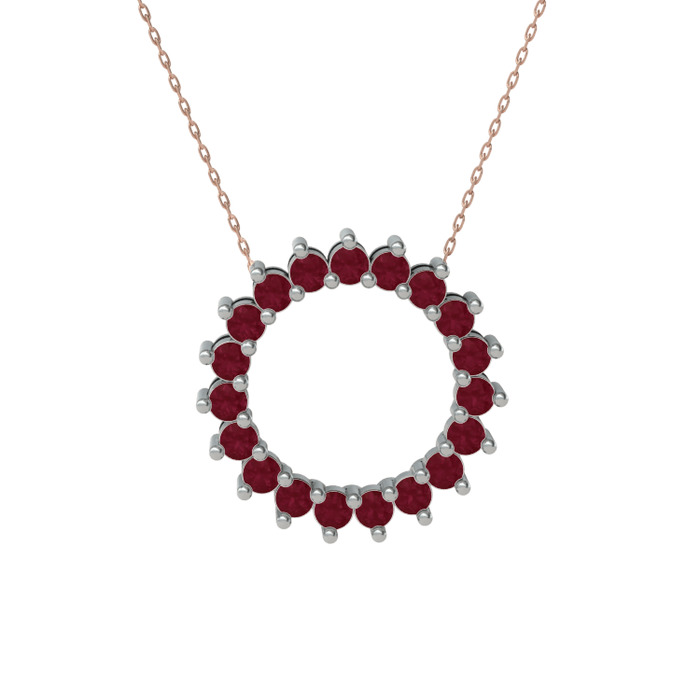 Kök yakut 18 ayar beyaz altın kolye (40 cm rose altın rolo zincir)