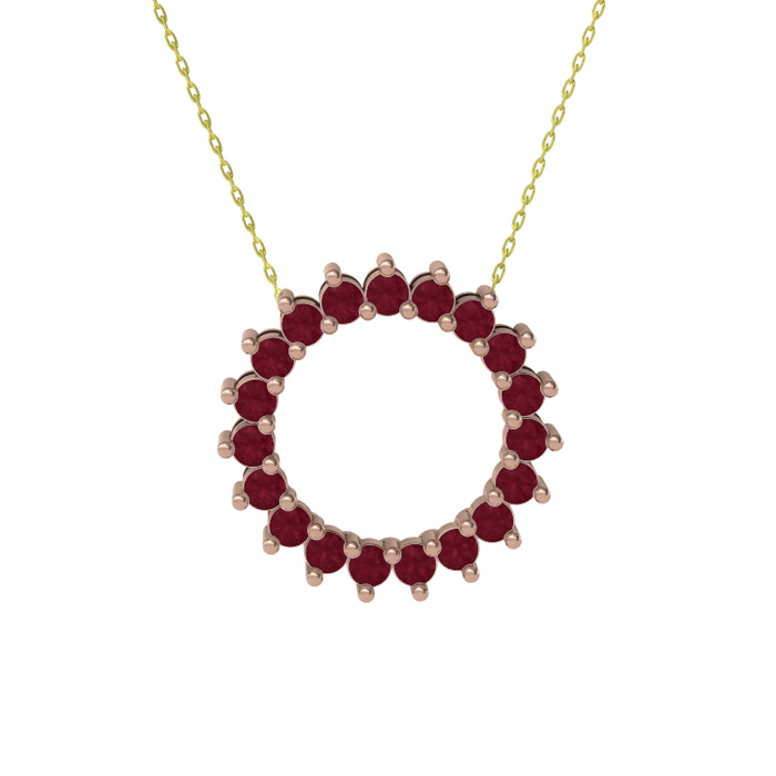 Kök yakut 8 ayar rose altın kolye (40 cm altın rolo zincir)