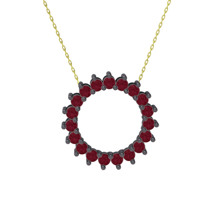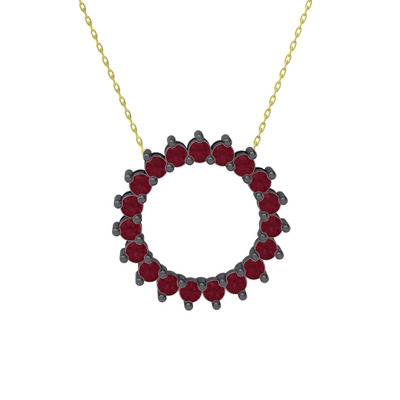Kök yakut 925 ayar siyah rodyum kaplama gümüş kolye (40 cm altın rolo zincir)