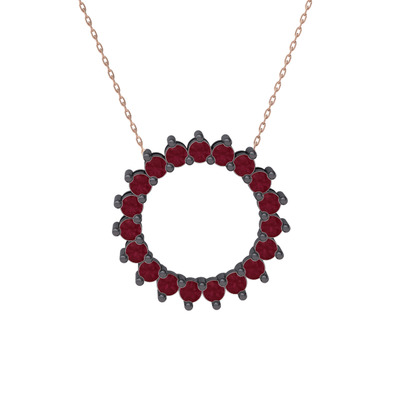 Kök yakut 925 ayar siyah rodyum kaplama gümüş kolye (40 cm rose altın rolo zincir)