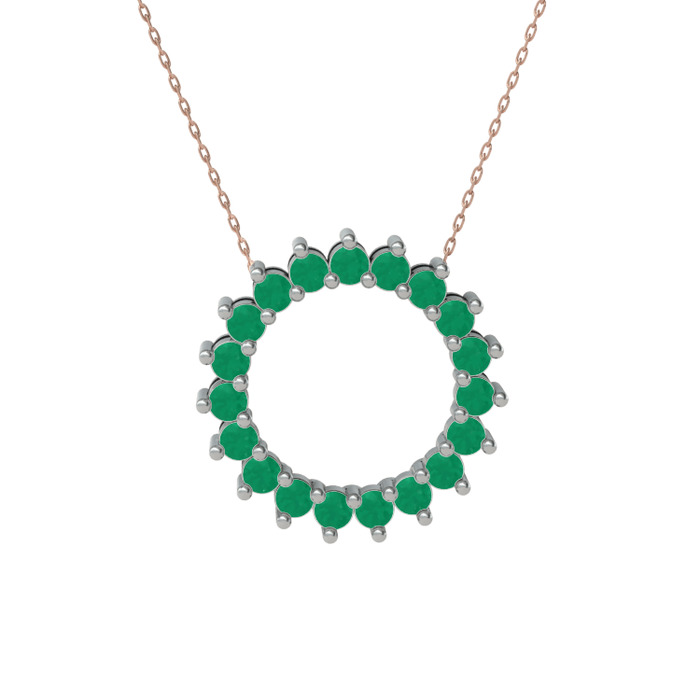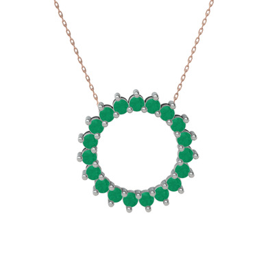 Kök zümrüt 14 ayar beyaz altın kolye (40 cm rose altın rolo zincir)