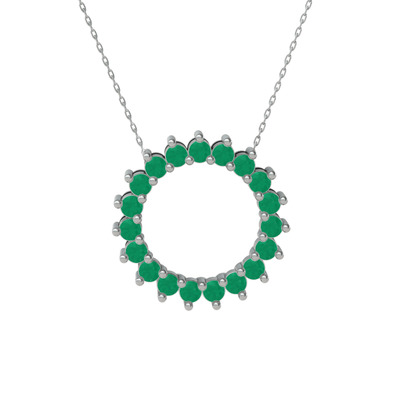 Kök zümrüt 925 ayar gümüş kolye (40 cm beyaz altın rolo zincir)