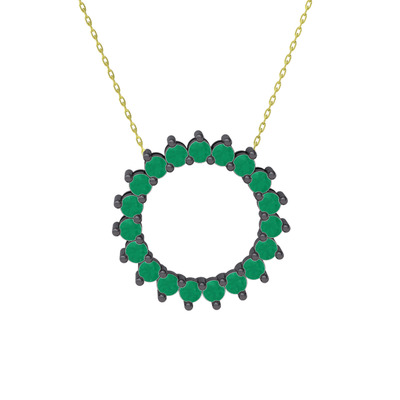 Kök zümrüt 925 ayar siyah rodyum kaplama gümüş kolye (40 cm altın rolo zincir)