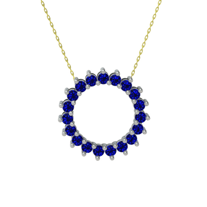 Lab safir 14 ayar beyaz altın kolye (40 cm altın rolo zincir)