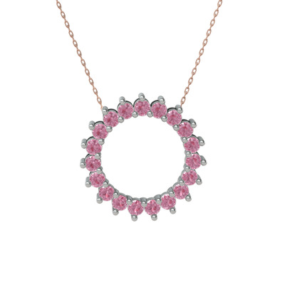 Pembe kuvars 18 ayar beyaz altın kolye (40 cm rose altın rolo zincir)