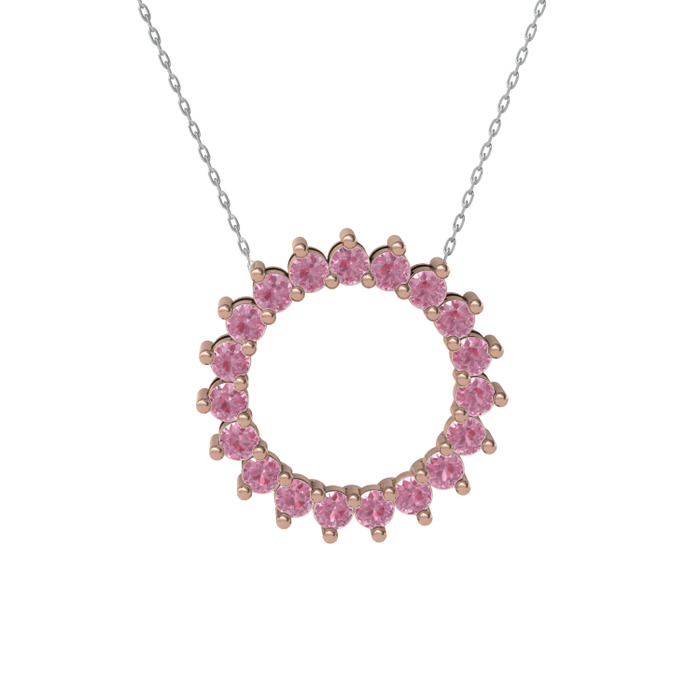 Pembe kuvars 18 ayar rose altın kolye (40 cm beyaz altın rolo zincir)