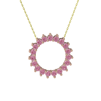 Pembe kuvars 8 ayar rose altın kolye (40 cm gümüş rolo zincir)
