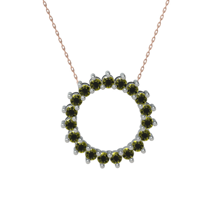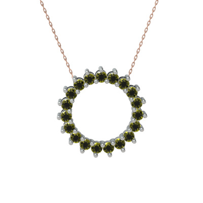 Peridot 14 ayar beyaz altın kolye (40 cm rose altın rolo zincir)