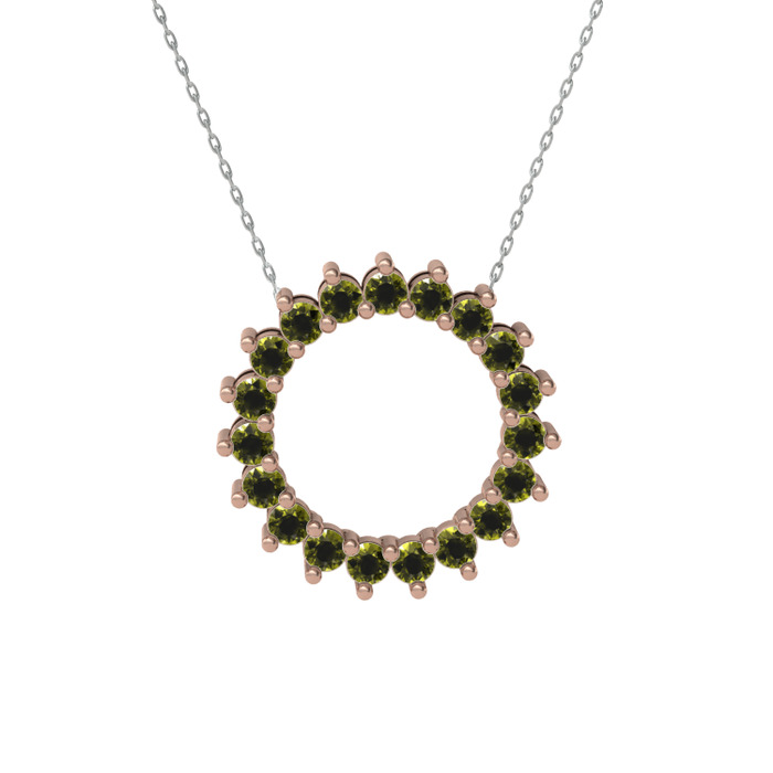 Peridot 8 ayar rose altın kolye (40 cm beyaz altın rolo zincir)