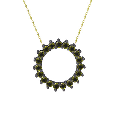 Peridot 925 ayar siyah rodyum kaplama gümüş kolye (40 cm altın rolo zincir)