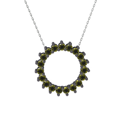 Peridot 925 ayar siyah rodyum kaplama gümüş kolye (40 cm beyaz altın rolo zincir)
