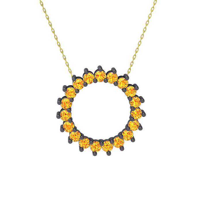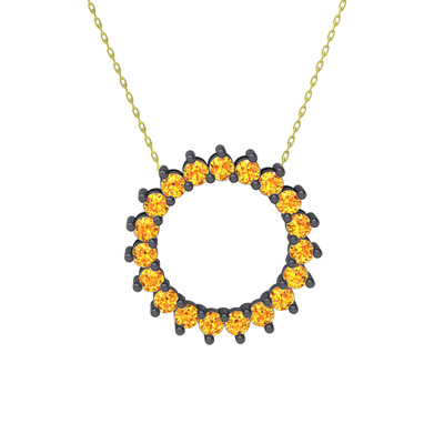 Sitrin 925 ayar siyah rodyum kaplama gümüş kolye (40 cm altın rolo zincir)