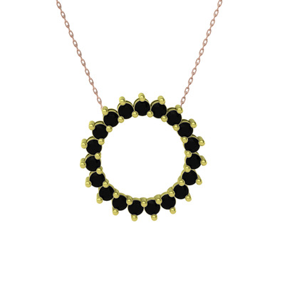 Siyah zirkon 14 ayar altın kolye (40 cm rose altın rolo zincir)