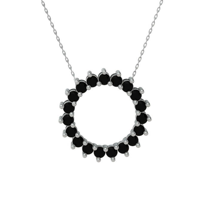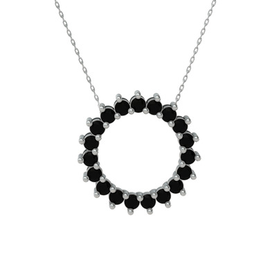 Siyah zirkon 18 ayar beyaz altın kolye (40 cm gümüş rolo zincir)