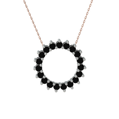 Siyah zirkon 8 ayar beyaz altın kolye (40 cm rose altın rolo zincir)