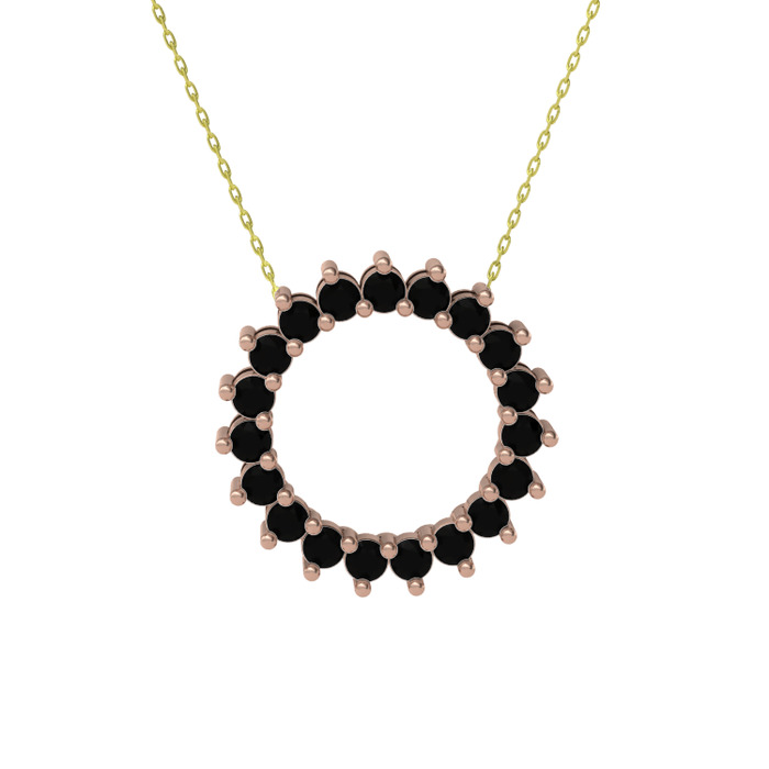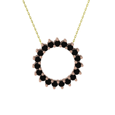 Siyah zirkon 925 ayar rose altın kaplama gümüş kolye (40 cm altın rolo zincir)